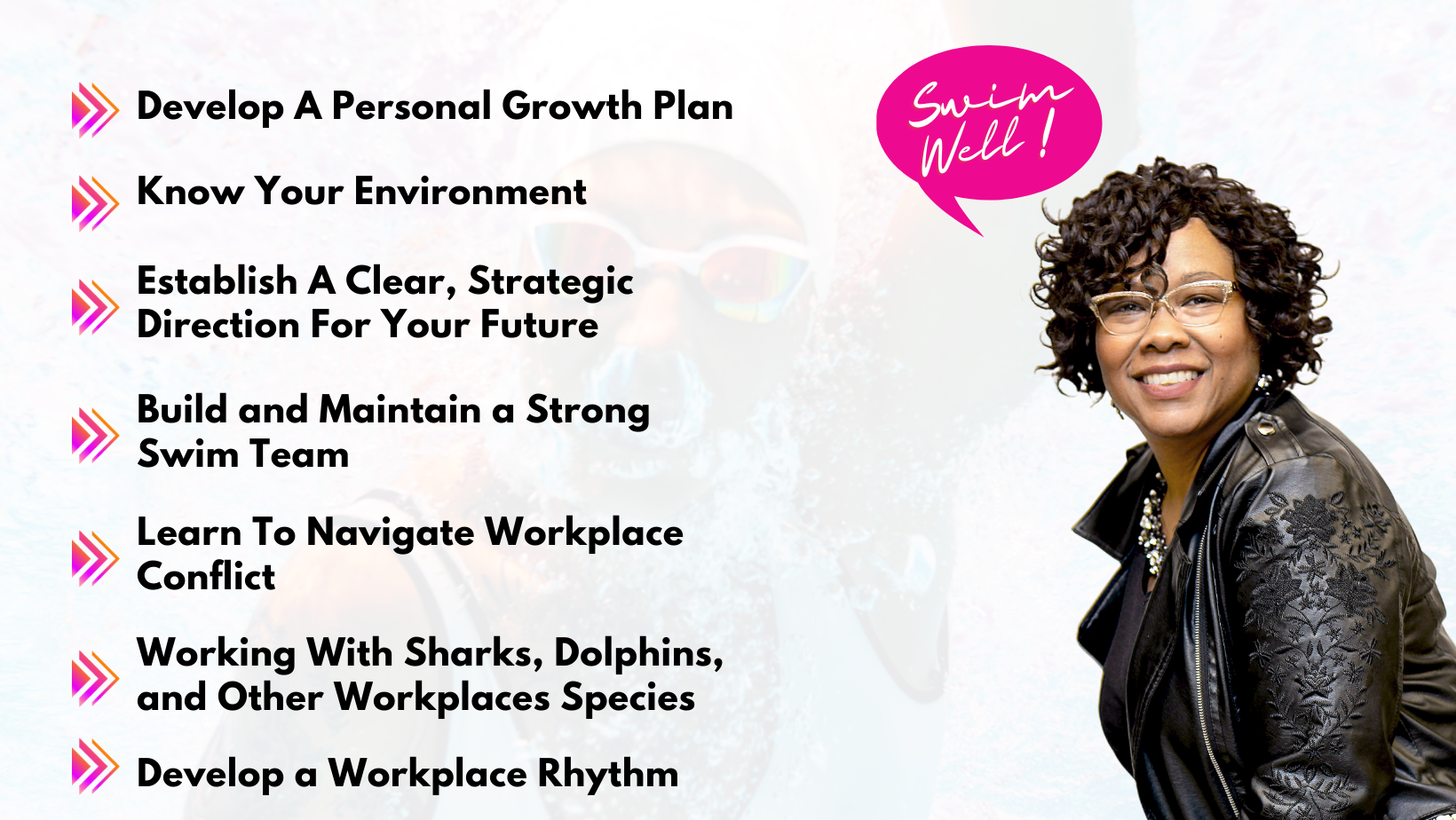 When you come face-to-face with shark-like people in the workplace, it's easy to let your emotions lead or to become paralyzed by the threat. Your response to shark activity will determine the level of your success. When it comes to the world of work, a lot of people just get thrown in and told to "Swim or Drown"! They survive...but it ain't pretty!